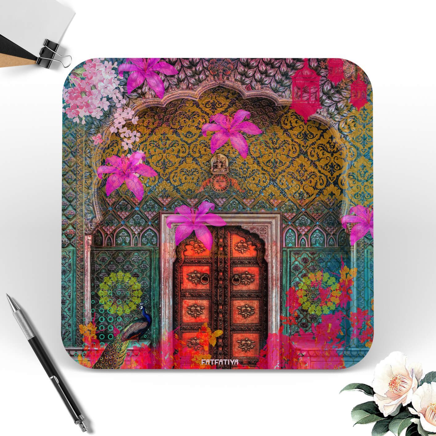 - Flowery Heritage Door Table Coasters Set