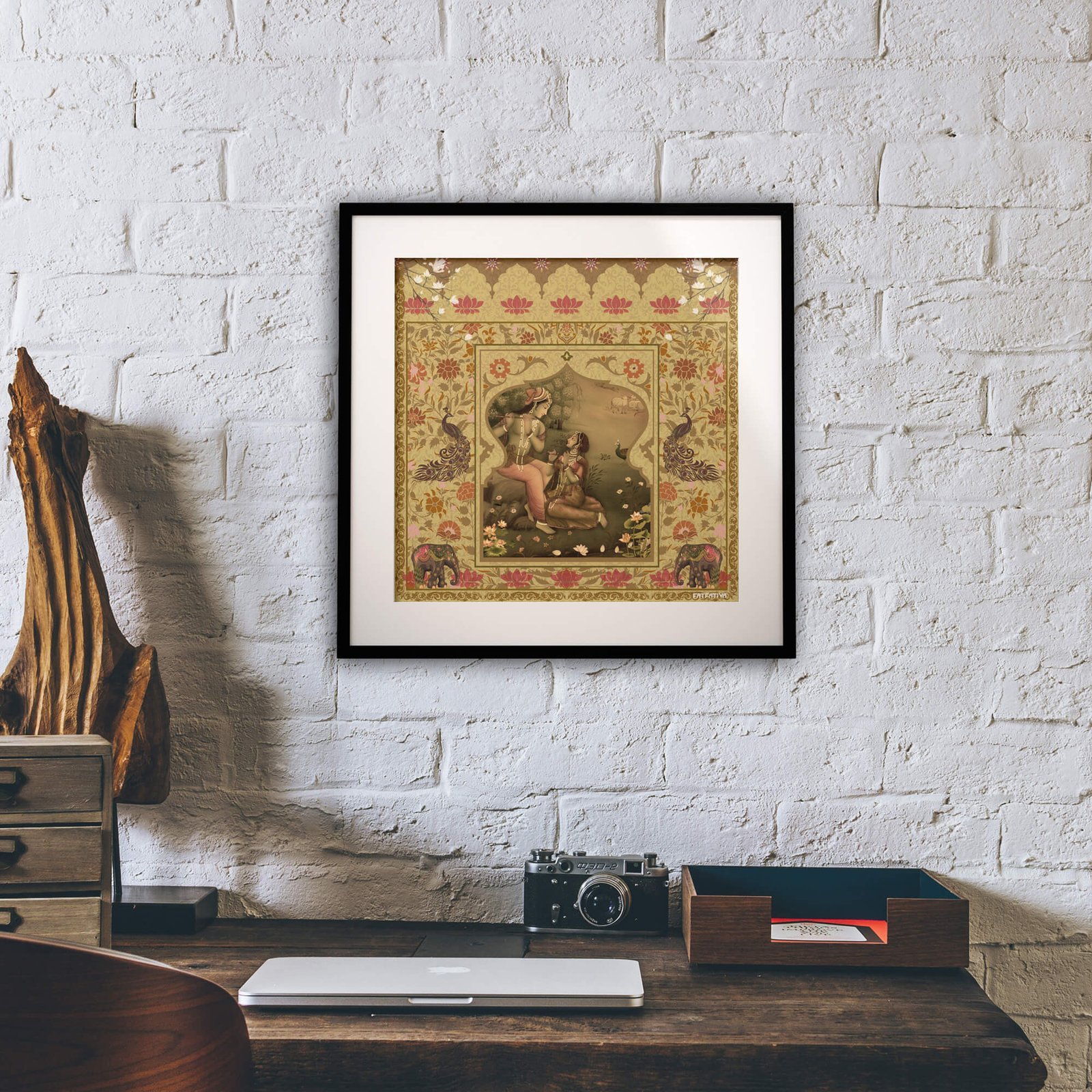 - Art-Inspired Design – Features a majestic peacock with royal arches and floral detailing in a soft, earthy palette.
