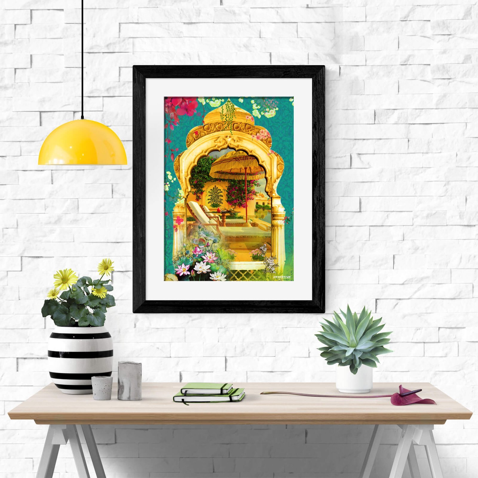 The gigantic elephants have been proving the royalty since ancient times. They are considered a symbol of strength in the Rajasthani parts of India. The art piece also has some Rajasthani style art which makes it look more attractive one. The flowering patterns and elephant symbols clearly make way for the strength that hides inside you and this makes this art piece one worth being bought home. An art piece with perfect symbolism can take your mind away from the negatives that life gives you. This art print releases positive energy and delivers messages straight to your heart and fills you up with positive energy all around so that you have a good day out there. This stark piece of art is embedded in furnished acrylic glass and a good-looking Synthetic Wood Frame to make the print visual and of true nature to the viewers.