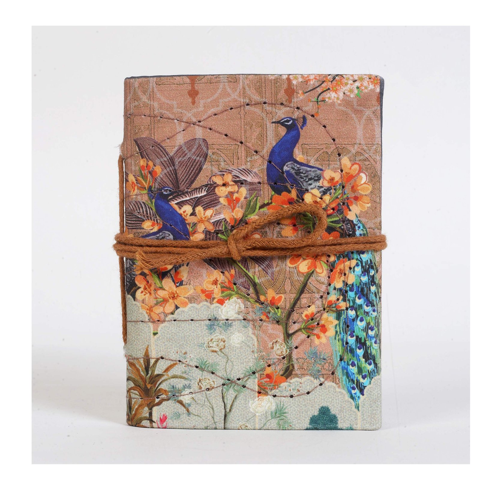 Peacock Floral Garden Handmade Notebook – Designer Fabric Cover Journal