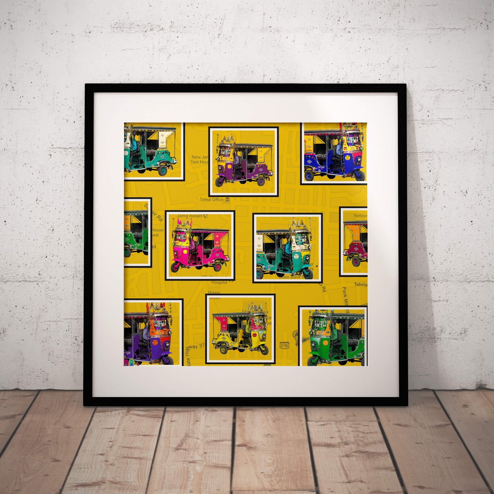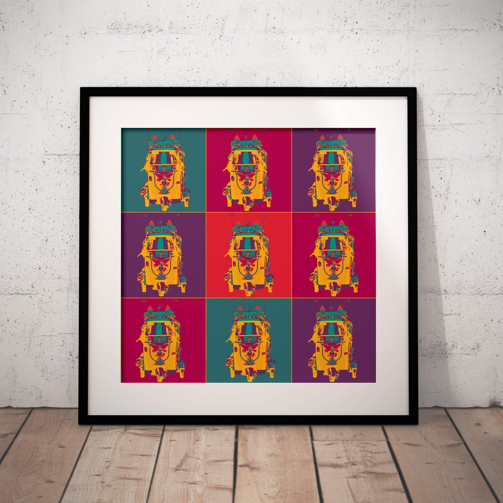 Bring bold, urban flair to your walls with the Pop Taxis Art Print (12×12 inches) from Fatfatiya. Inspired by India’s vibrant streets and pop art culture, this piece showcases a colorful lineup of taxis, each rendered with artistic precision and street-style attitude.