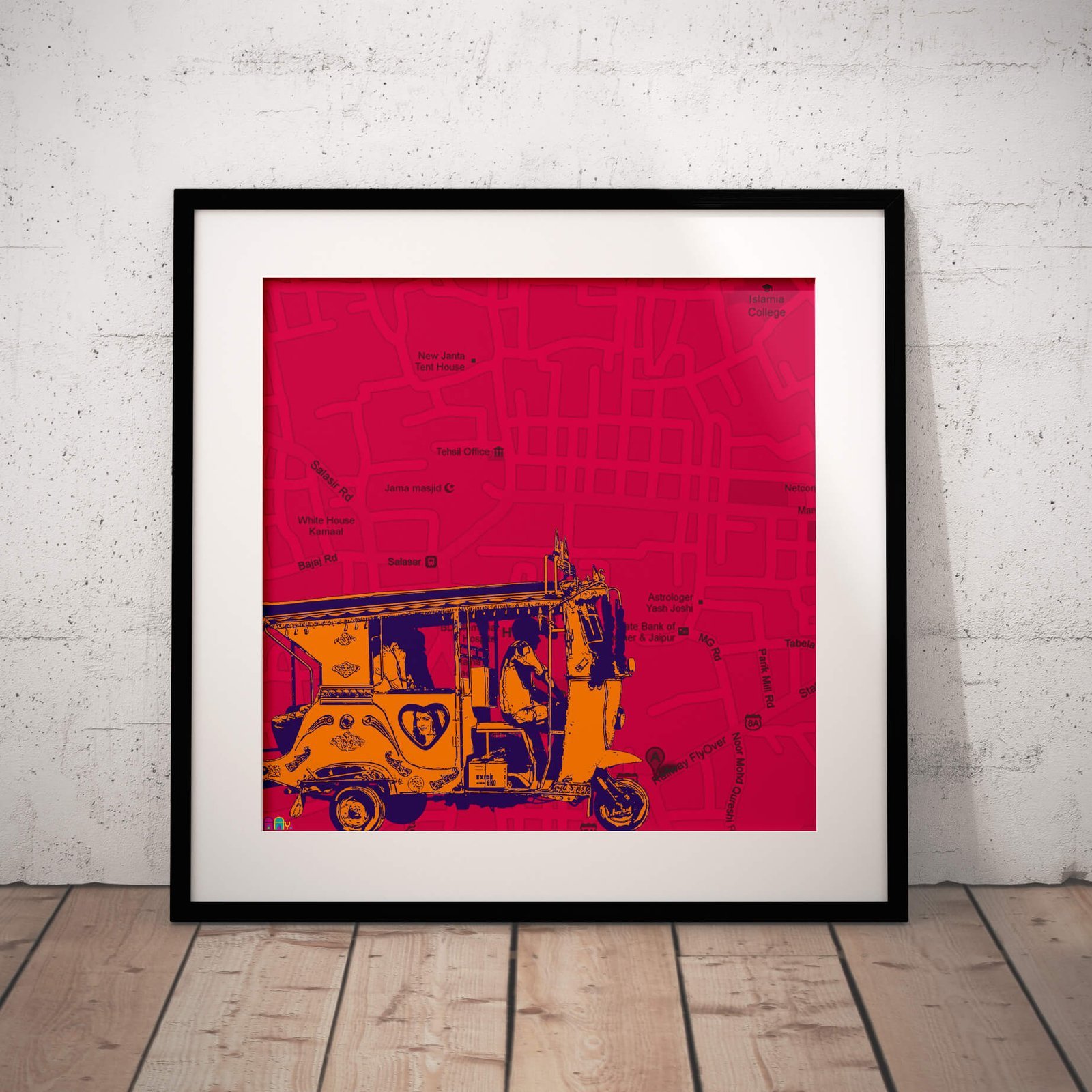 Shekhawati is well-known for its magnificent Havelis, quirky taxis, and rich cultural heritage. Shekhawati taxis are well-known for their unique design and colourful decoration. The taxis of Shekhawati inspired this collection of digital art prints. Decorate your home with these lovely framed art prints, which are printed on high quality 300 GSM paper.