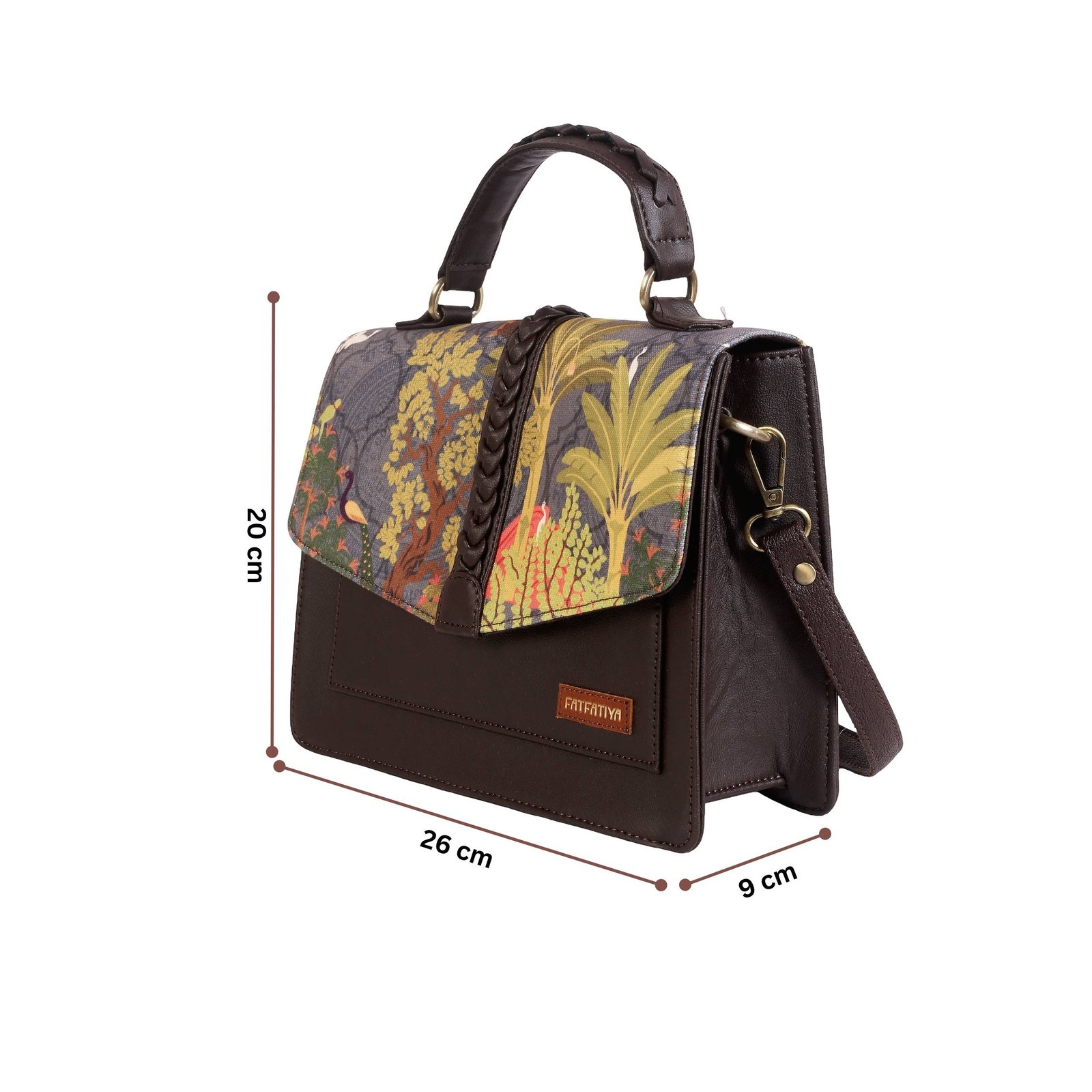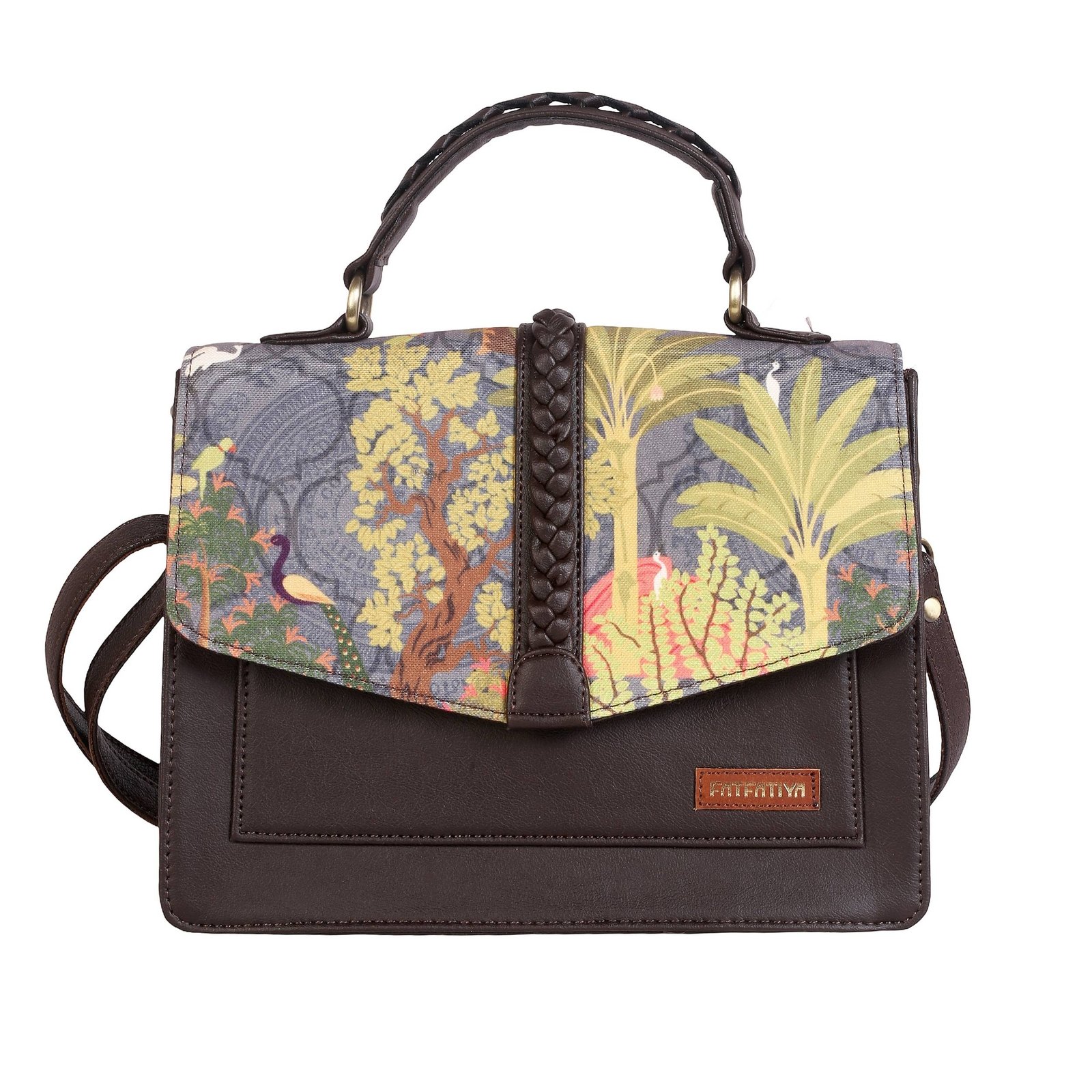 Perfect as an office handbag, college bag, travel purse, festive accessory, or everyday sling bag, the Fatfatiya Tropical Satchel beautifully combines nature-inspired design, practicality, and contemporary craftsmanship in one statement piece.