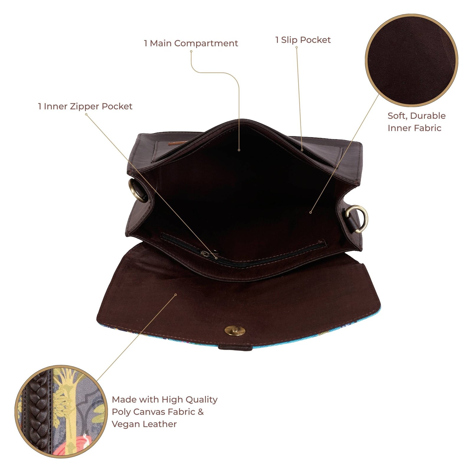 Material Used – High Quality Poly Canvas Fabric & Premium Vegan Leather