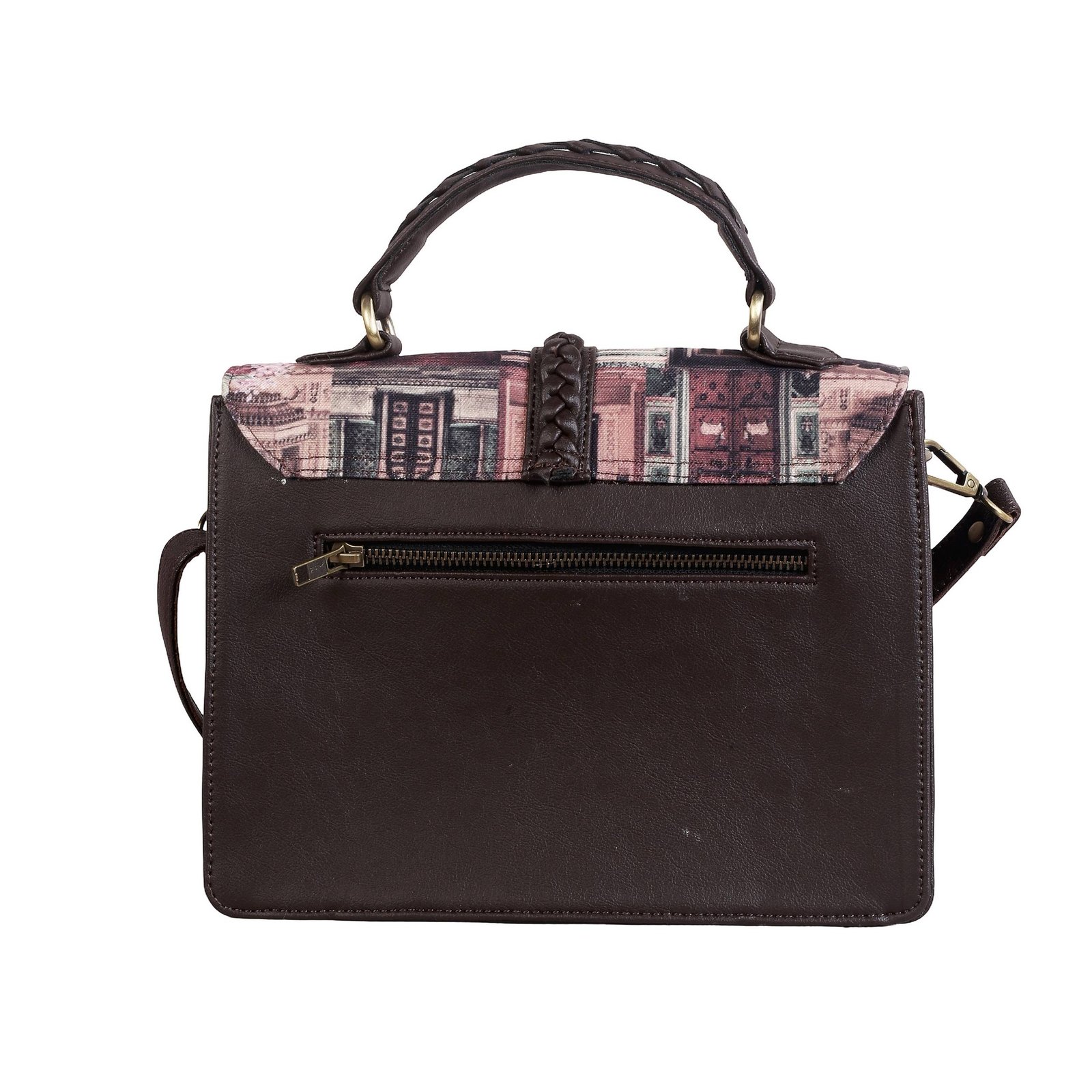 Crafted from high-quality poly canvas fabric and premium vegan leather, this structured handbag offers durability with a refined finish. The signature braided flap detail and sturdy top handle enhance its sophisticated appeal, while the detachable and adjustable sling strap allows it to be styled as a crossbody bag for women or a classic top-handle handbag.